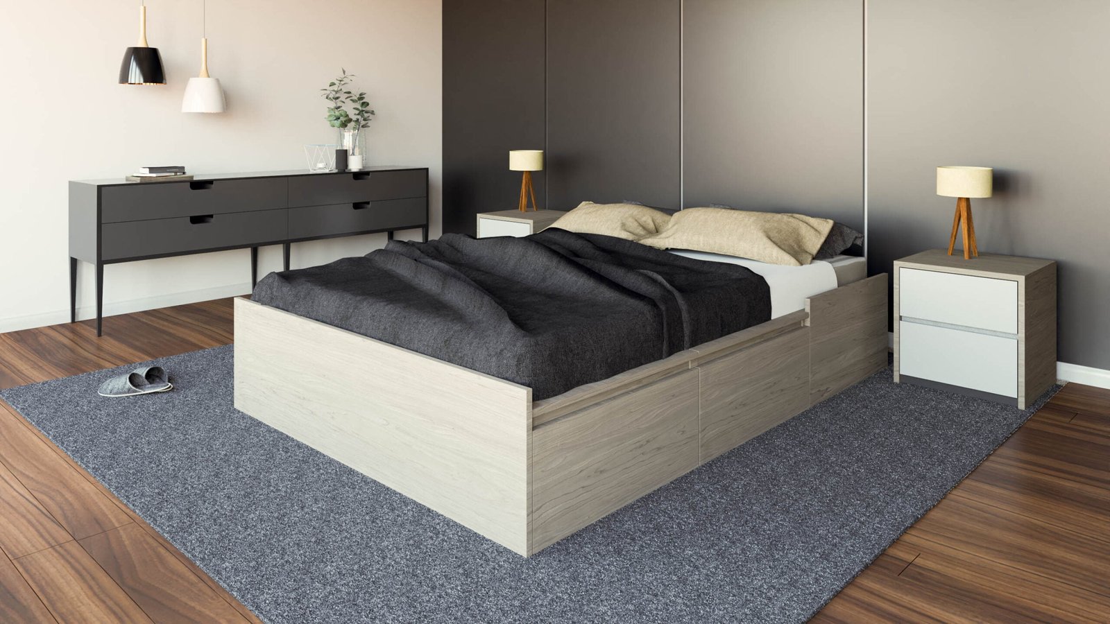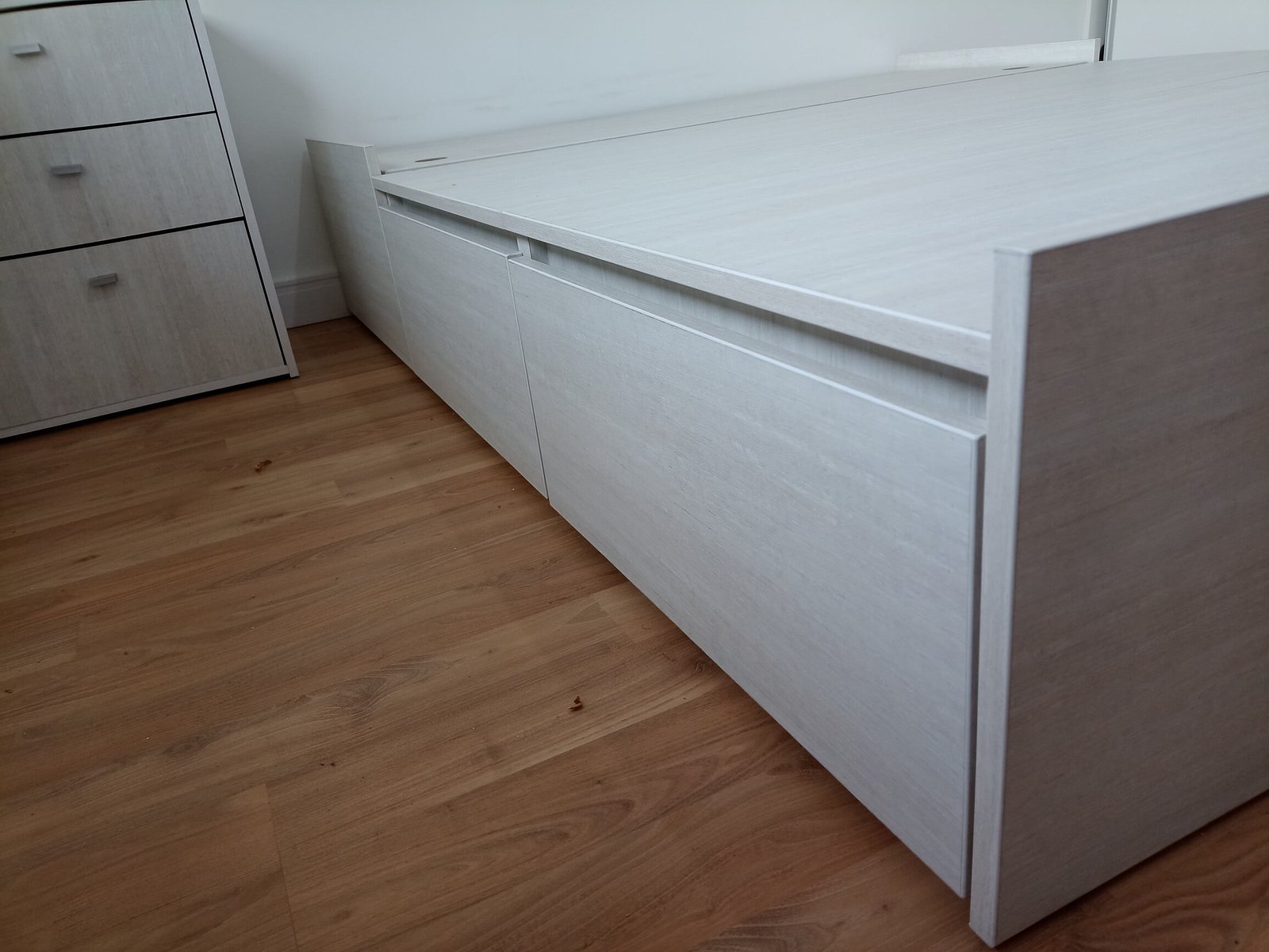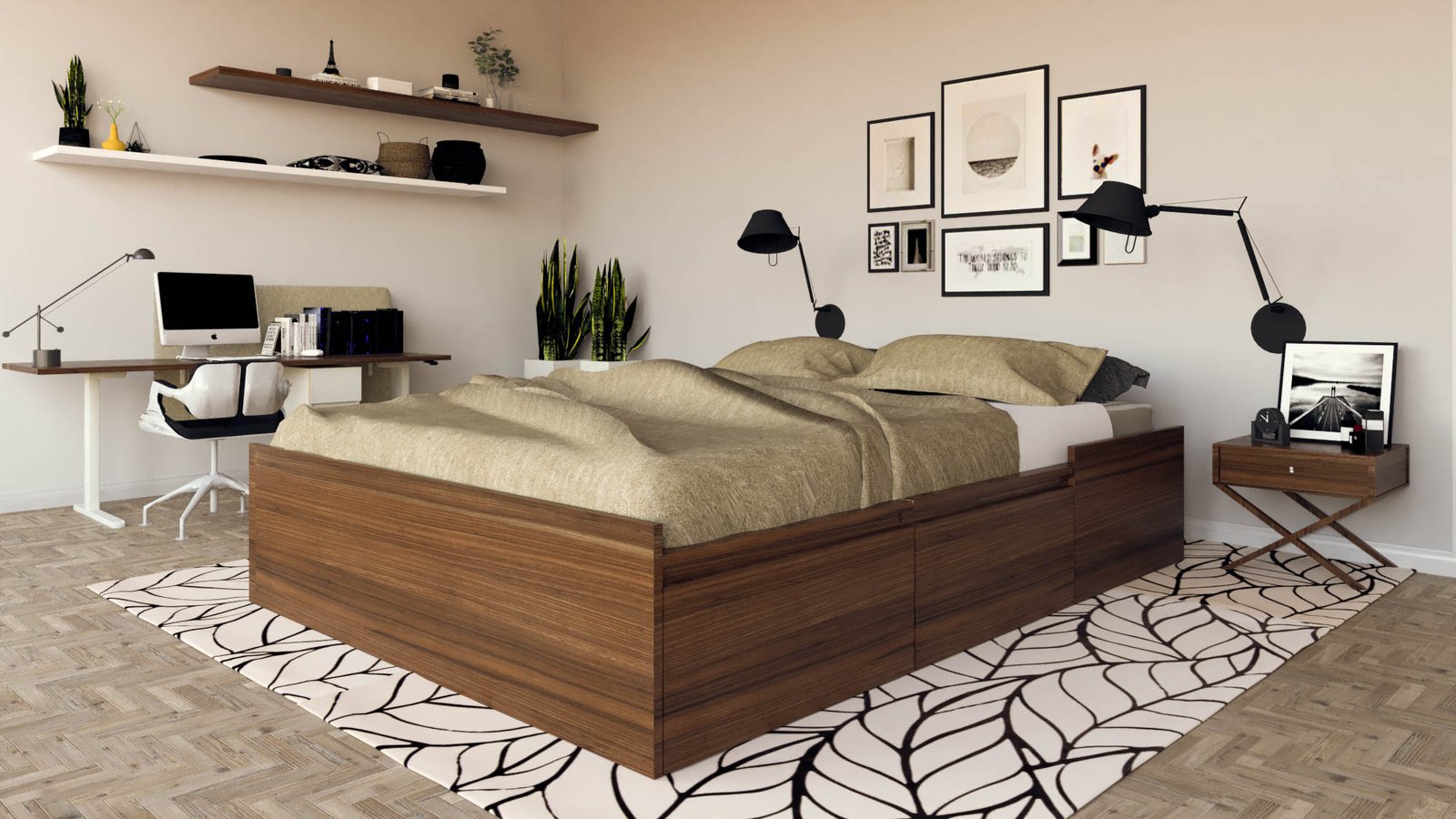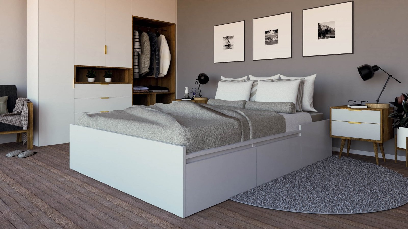 La Baulera en la cabecera tiene tapa amortiguada con Pistones a Gas, es ideal para guardar objetos voluminosos y ropa de cama de uso poco frecuente.